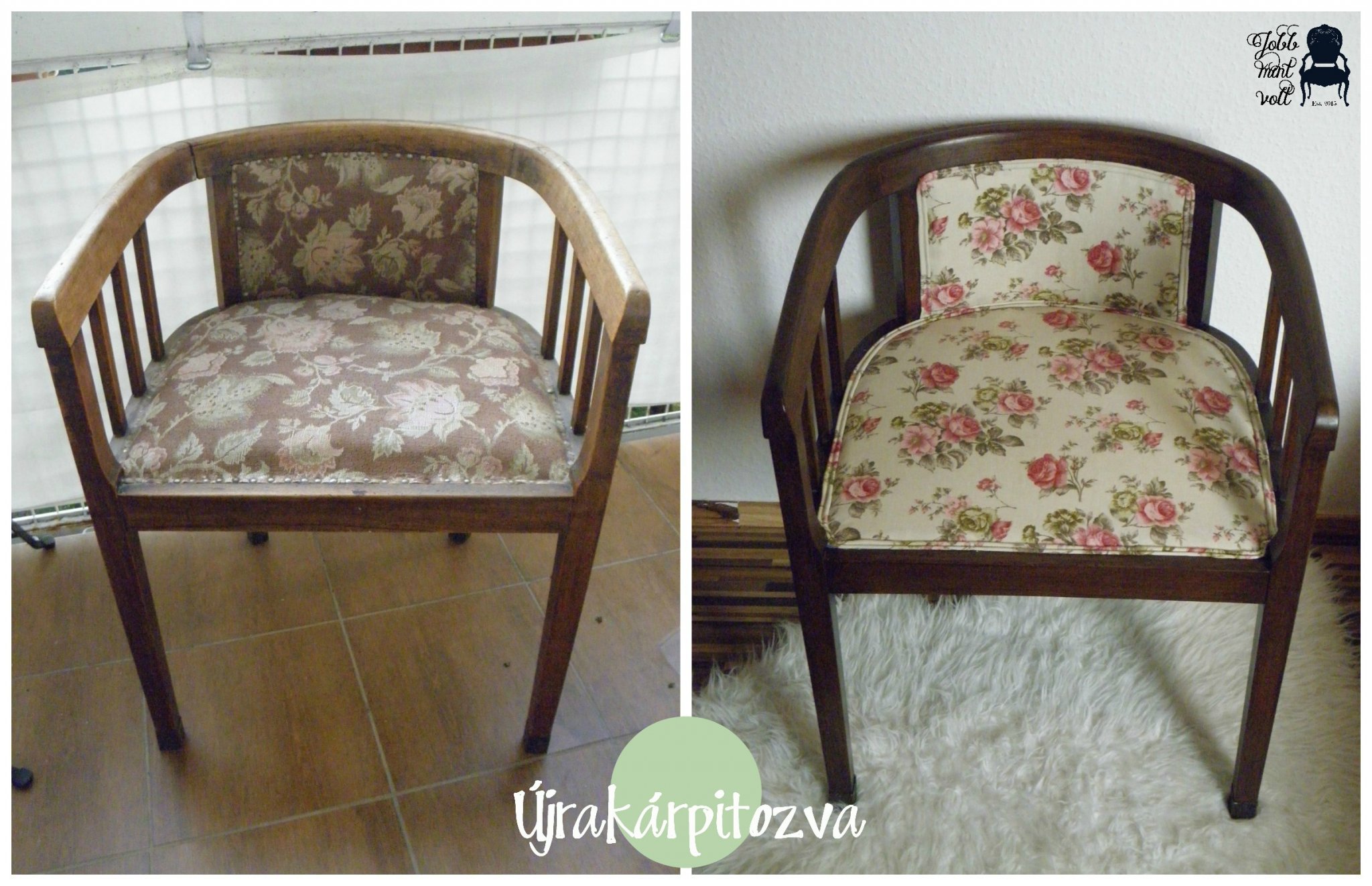 A támla részt teljesen be is fejezzük azzal, hogy felkerül rá a kárpitunk. Elővesszük a leszedett régi kárpitot, és azt használva szabásmintának ki is szabjuk az új borítást.