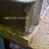 Az ülőrész közepére érdemes 3-5 cm vastag szivacsból egy, az ülőrésznél 10-15 centivel kisebb, kockát vágni. Ez fogja megadni a megfelelő búbot az ülőrésznek, valamint az ülőrész közepének használat során történő “kiülést” is megakadályozza. Majd lemérjük a keret pontos belső méreteit, a legszélesebb pontokra koncentrálva, és kiszabunk ezek alapján 5cm vastag szivacsból egy nagy kockát. Ezt a kockát ráhelyezzük az ülőfelületre, és alulról filctollal az íveket is rárajzoljuk, majd ez alapján levágjuk a kilógó széleket. Erre jön 1 cm szivacs. Ezt vághatjuk 0,5-1 cm ráhagyással, mivel ezt már a kerethez is tűzzük majd. Tudom, nem egyértelmű miért kell ennyi szivacs, de az 5 cm vastagságú még csak a keret és a hevederek mélységét fedik le, igazából csak a rugózatot helyettesítik.