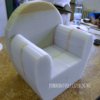 Végül pedig ráhelyezzük az 1 cm szivacsból kivágott részt. Itt, a támlához hasonlatosan, lefeszítő molino vásznas rögzítést alkalmazunk majd, amihez a vásznat a szivacsunkat használva szabjuk ki, ráhagyásokkal körben. Letűzést követően kapjuk meg ezt a formát már.