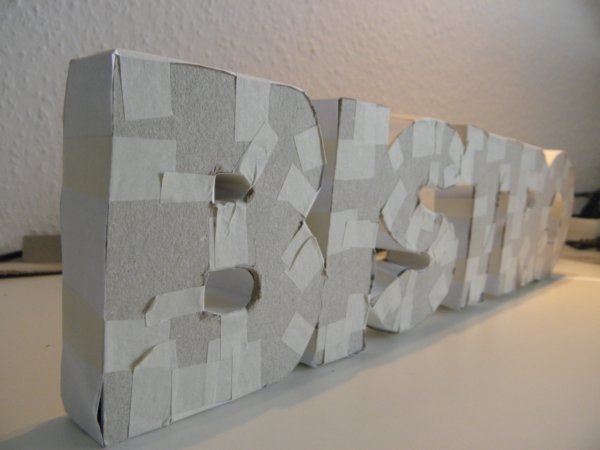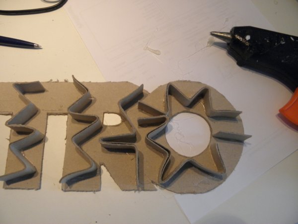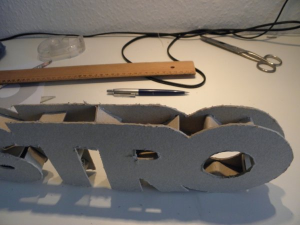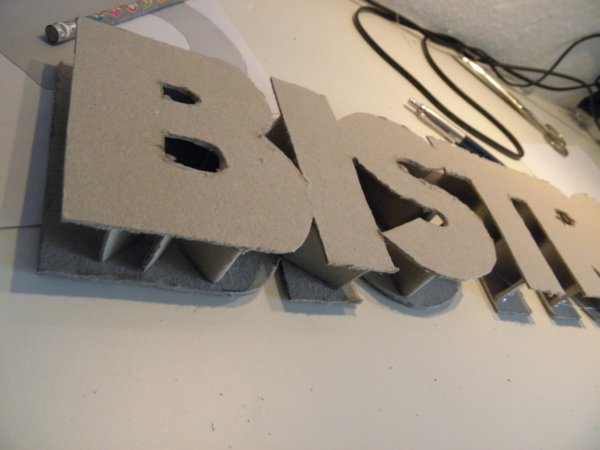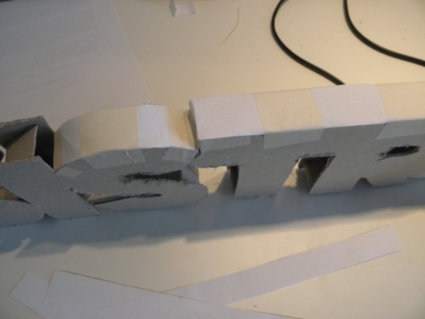 Majd harmonikára hajtogatott lemezcsíkokkal adtam meg a megfelelő vastagságot, illetve a merevséget a betűknek. Így már saját lábaira is tudtam állítani.