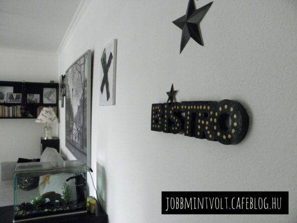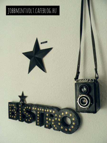 Az étkező asztalunk felett díszeleg, ez most a mi bisztrónk 🙂 Az i-re a pont egy sima papírcsillag.