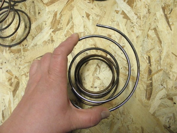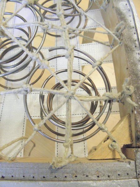 Eztán érdemes (ha nincs) a rugóvégeket egy kicsit befelé 6-7 mm-s darabon meghajlítani, ez a kampózás. Az előző képen pont jól látszik az a kampó… Így a rugó éles vége nem fogja kiszakítani a felette-alatta lévő anyagokat, valamint nem is tud olyan könnyen kibújni a kötözésekből, ha esetleg elfordulna.