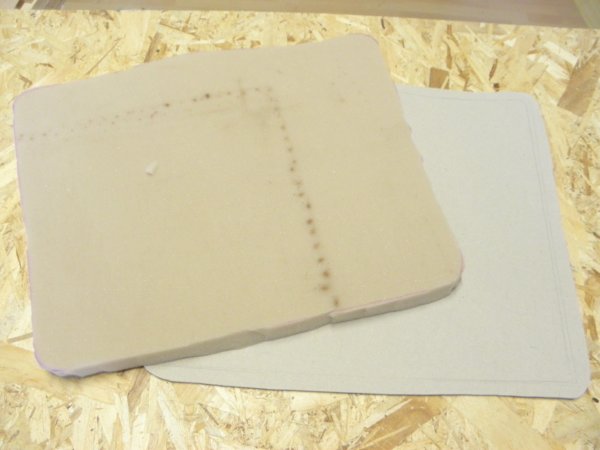 A felesleget körben levághatjuk, a szivacsot pedig a lemezre ragaszthatjuk, majd erre jöhet a szövet is.