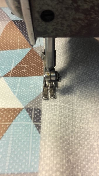 Összevarrtam a tetejével, a saroknál pont az oldal varrásáig haladva, ott 90 fokban elfordítottam az anyagot és úgy varrtam tovább a következő oldalt. A varrásráhagyást érdemes széthajtani mindkét oldalra.