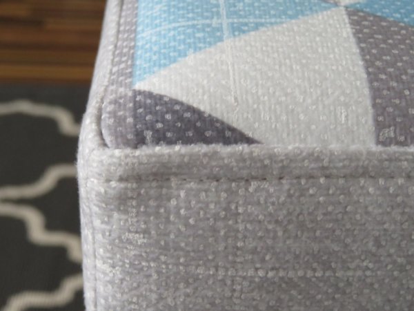 Szövet tekintetében ez részben maradékból készült (a szürke a forgófotelről vagy a tiniszoba ágyvégről már ismerős lehet), valamint hozzáillő “majd jó lesz valamire” céllal beszerzett anyagból van. Mindkettő a szovetfutar.hu-ról rendelve (Pipacs a szövet neve).