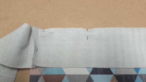 A sarkok magasságát is beállítottam, majd először a közepét, a varrásvonalat tűztem le, majd a mindkét oldalt laposan elhajtogattam és letűztem.