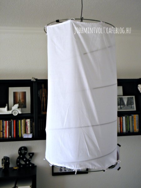 A gyerek megnő, a játékok tárolására használt IKEA-s tároló pedig a szekrény mélyén porosodik, mert eltűntek belőle már a plüssök, labdák. Kidobni…na azt nem. Viszont szerettem volna régóta koushi lámpabúrát készíteni valamiből, de fogalmam sem volt, milyen alapra feszítsem ki a vásznat hozzá. Aztán jött a szikra, némi pinterest segítséggel, és a mai szombat délelőtt el is készült a projekt.