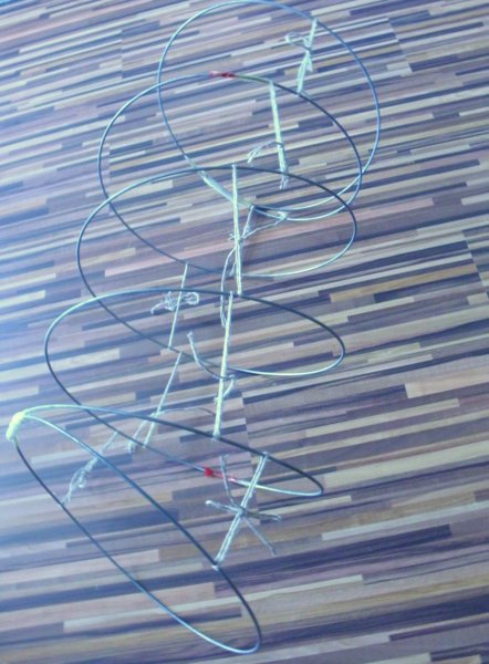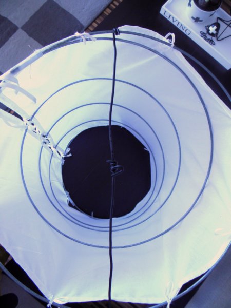 A lámpavezetékhez rögzítéshez műanyaggal bevont drótból készítettem “szereléket” hozzá.
