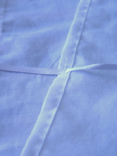 A szalagokat minden oldalára felvarrtam, ezekkel fogom a vázhoz kötözni a vásznat.
